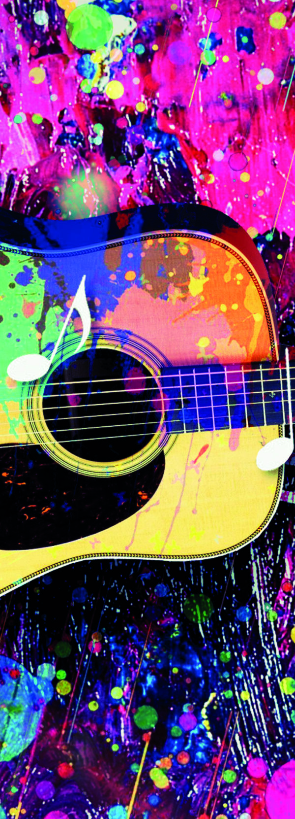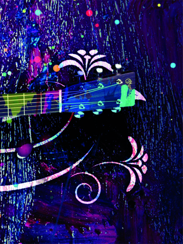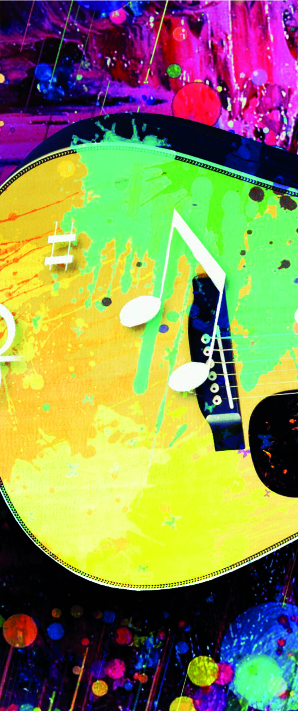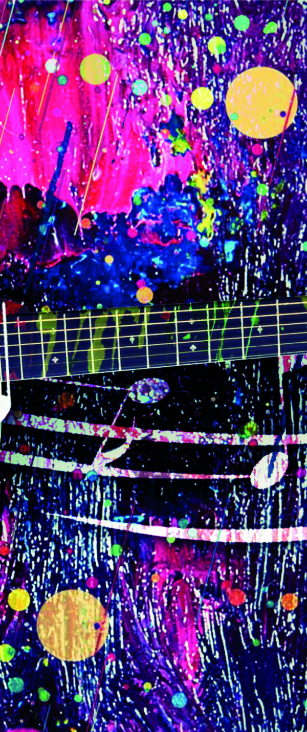 Cuadro XXL 1.50 x 0.70cm de 5 Piezas "Guitarra en Llamas"