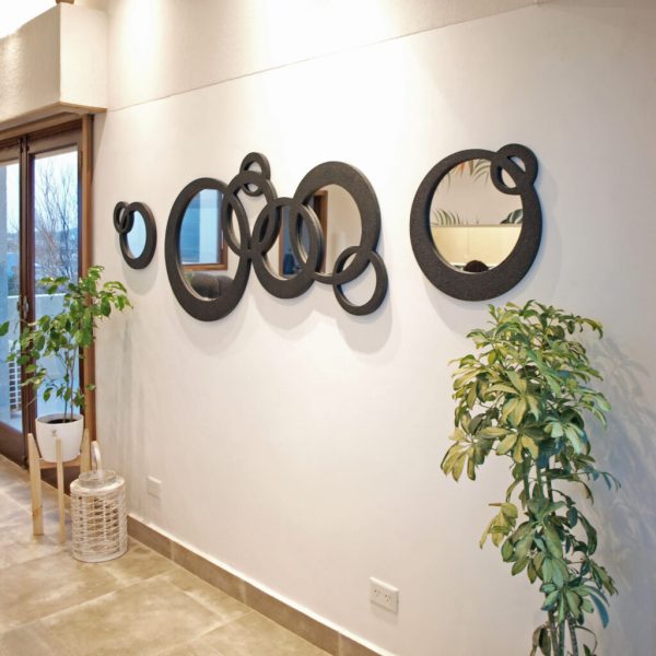 Espejos CIRCULOS 200mm x 90mm medida exterior del conjunto texturado GRIS PLATA